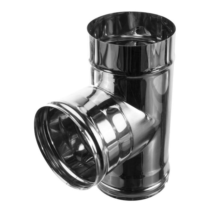 Тройник 400 предназначен для современных дымоходных систем, и используется в тех ситуациях, когда для вертикальных и горизонтальных участков труб требуется соединительный элемент и нужно установить прочистное устройство для очистки дымохода от мусора.
