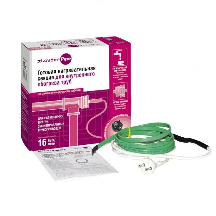 xLayder Pipe EHL-16-2 внутрь трубы это готовая нагревательная секция, основной для которой является саморегулируемый кабель, обеспечивающий высокую энергоэффективность секции. Данное устройство монтируется внутрь трубы, обеспечивая ее равномерное и безопасное прогревание в период заморозков. Применяется в системах водяного типа, накопительных баках или водонапорных насосах.