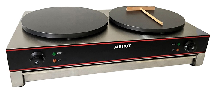Блинница Airhot BE-2используется на предприятиях общественного питания и торговли. Модель оснащена световым индикатором нагрева и автоматическим поддержанием температурного режима. Корпус выполнен из нержавеющей стали, жарочная поверхность - из чугуна с антипригарным покрытием.