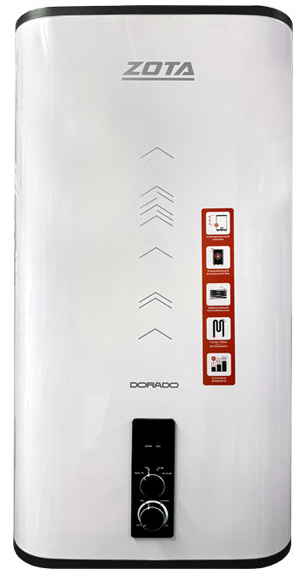ZOTA (Зота) Dorado 80 это плоский накопительный водонагреватель с трубчатым нагревательным элементом и стальным теплообменником. Внутренний бак объемом 80 литров сделан из нержавеющей стали. Устанавливать модель можно как вертикально, так и горизонтально, причем крепления для этого входят в комплект поставки.