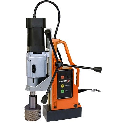 Magtron МВЕ-100FR — магнитный сверлильный станок: купить по выгодной цене можно на нашем сайте. Данная модель позволяет не только создавать отверстия диаметром до 130 мм, но и выполнять нарезку резьбы (до М30), развертывание и зенкование. Надёжный производительный двигатель с мощностью 1,7 кВт с увеличенным крутящим моментом. Есть реверс для максимального удобства работы. Защита от перегрева (система охлаждения) и перегруза обеспечивают максимально долгий срок службы без поломок. Магнит работает параллельно с двигателем, звуковой сигнал предупреждает выключение. Редуктор, состоящий из 4 ступеней, даёт возможность выбрать наиболее удобную скорость – 110 / 175 / 245 или 385 об/мин.