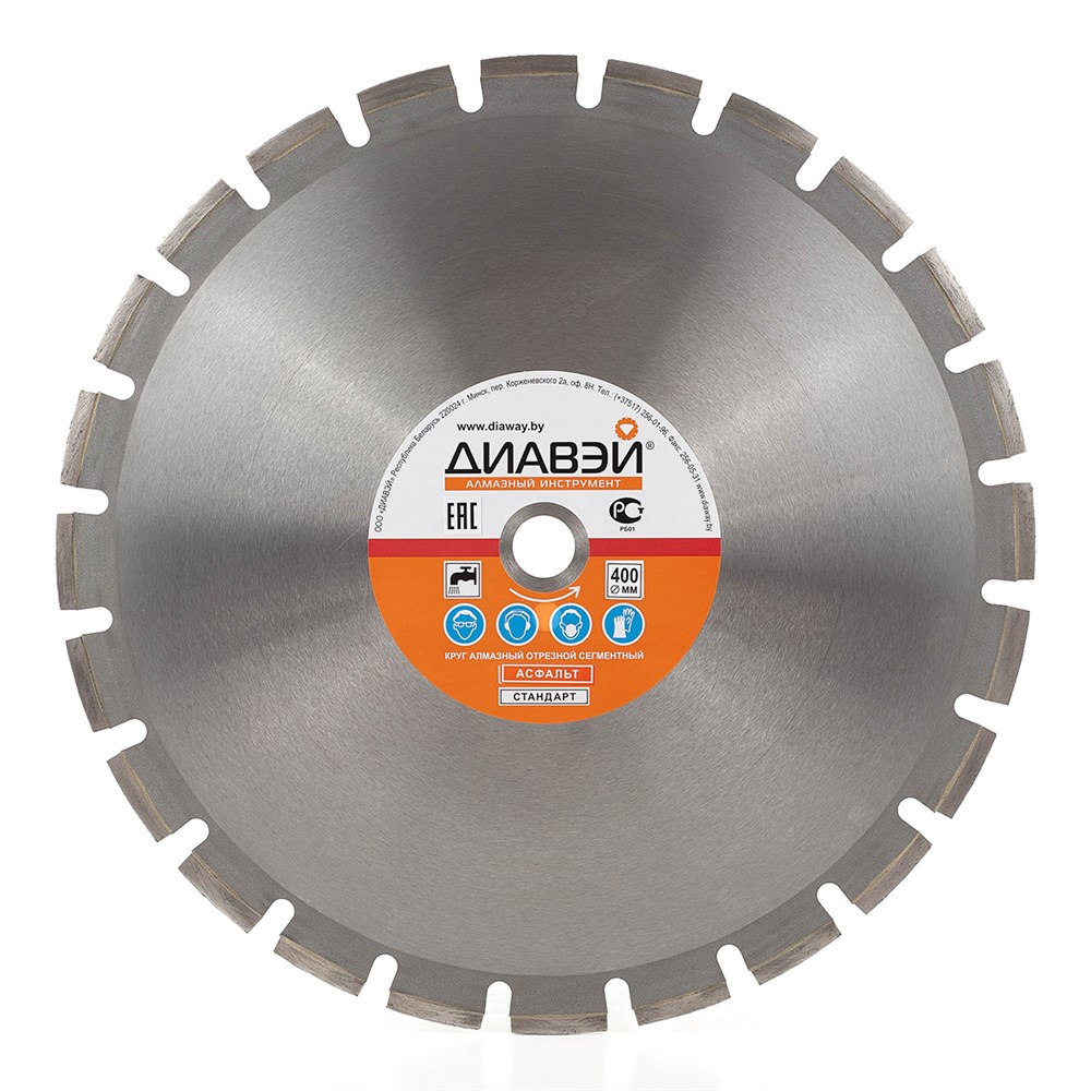 Алмазный отрезной круг Диавэй Стандарт 400х3,5х25,4(20), бетон, исп. изготовленный в Беларуси подходит для распиливания бетонных и железобетонных предметов, асфальтового полотна и камня. Устанавливается на угловые шлифмашины. Корпус из стали и сегменты в количестве 24 шт обеспечивают отличную износоустойчивость и высокое качество шва. Рекомендуется использовать вместе водяным охлаждением.