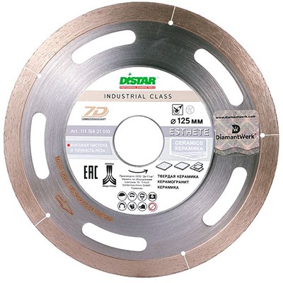 Алмазный круг Distar для резки керамической плитки, керамогранита и рельефной глазури. Диаметр - 115 мм. Применяется при строительных и ремонтных работах с различными УШМ. Для фиксации предусмотрено посадочное отверстие размером 22,2 мм. Сплошная кромка высотой 8 мм изготовлена с применением прочных технических алмазов. Характеризуется высоким рабочим ресурсом и производительностью.