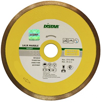 Distar Marble 1A1R диаметром 350 мм. Предназначен для качественной резки мягкого природного камня и стекла. Используется на различном режущем оборудовании. Оснащен сплошной кромкой, изготовленной с применением высокопрочных технических алмазов. Фиксируется к инструменту при помощи посадочного отверстия размером 32 мм. Характеризуется высоким рабочим ресурсом.
