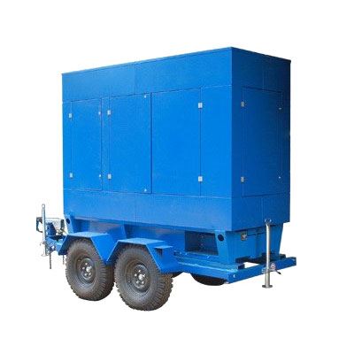 Дизельный электроагрегат передвижного типа изготовлен в блоке на стальной раме с вибрационными опорами. Установлен на две колёсных пары, что позволяет использовать аппарат в любом месте, где необходим постоянный или дополнительный источник электропитания.Контейнер оснащён дверцами с замками, погодозащитным капотом, имеет хорошую гидроизоляцию. Топливный бак на 120 л обеспечивает свыше 8 часов автономной работы.Электростанция приводится в действие двигателем (42 кВт), оборудована синхронным генератором и шкафом управления с блоком АВР (вторая степень автоматизации).