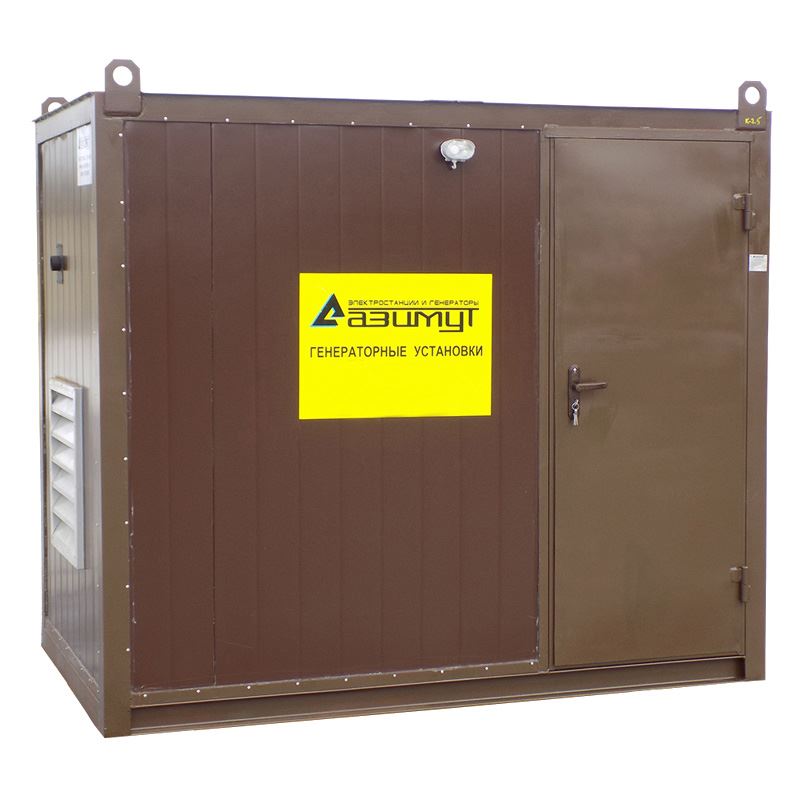 Суммарная мощность потребителей - 8 кВт Дизельный двигатель AZIMUT Вместительный топливный бак Запуск электрическим стартером Синхронный альтернатор Z164B Контейнерное исполнение