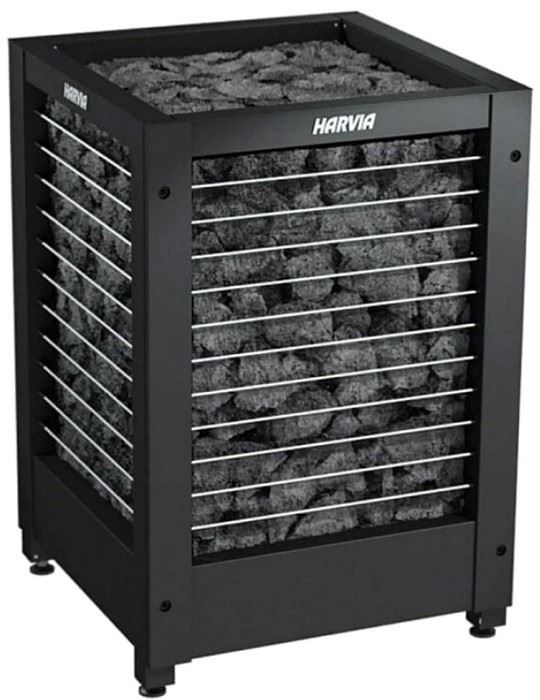 Электрокаменка HARVIA Modulo MD135G Black без пульта управления сделана в виде открытого прямоугольника, стенки которого решетчатые. Такая конструкция позволяет хорошо видеть заполненность камнями и открывает доступ для прямого полива камней водой. Вместимость до 160 кг камней позволяет быстро прогревать помещение.