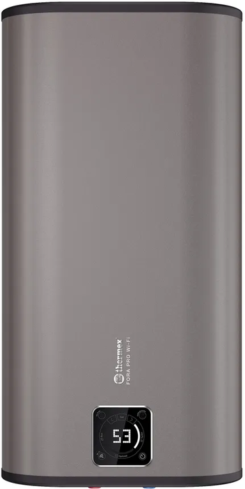 Электрический накопительный водонагреватель Thermex (Термекс) Fora 50 (pro) Wi-Fi рассчитан на 1-2 потребителя и имеет объем 50 литров. Он оснащен возможностью настройки температуры в трех режимах: экономичном, оптимальном и турбо. Заданная температура отображается на LED-дисплее. Устанавливается как вертикально, так и горизонтально.