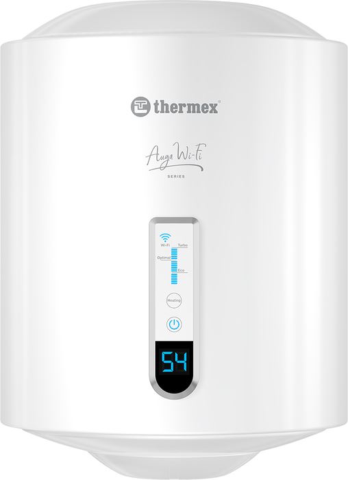 Компактный водонагреватель THERMEX (Термех) Auga 30 V Slim Wi-Fi оснащен электронной системой управлением с Wi-Fi. Данное решение позволяет использовать мобильное устройства в качестве основного компонента настроек. ТЭН изделия изготовлен из нержавеющей стали, что обеспечивает долгий срок безотказной службы. В качестве дополнительной меры защиты выступает магниевый анод.
