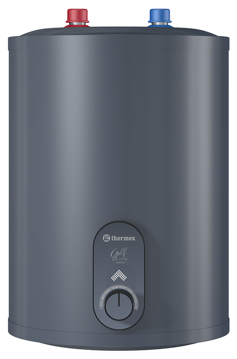 THERMEX (Термекс) Golf 10 U это компактный накопительный водонагреватель с электрическим типом подключения. Объем внутреннего бака составляет 10 литров, трубы подведены к бойлеру сверху. Для безопасной эксплуатации в данной модели есть режим самодиагностики, встроенное устройство защитного отключения, а также функция защиты от замерзания.