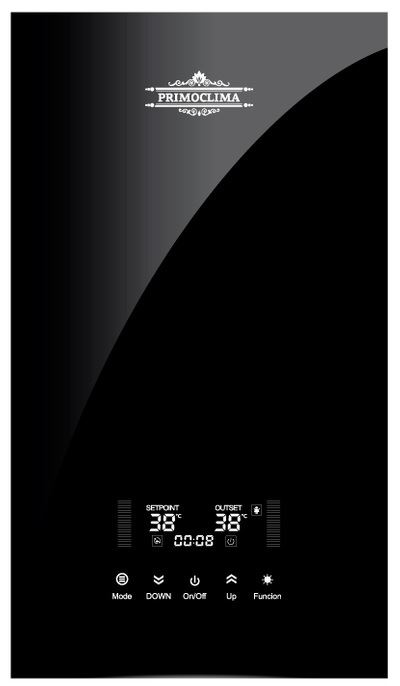 Primoclima (Примоклима) INTEGRA 14 кВт, черный это проточный электрический водонагреватель, выполненный в тонком и изящном корпусе черного цвета. Вода и электрическая часть в корпусе разделены, что делает эксплуатацию оборудования полностью безопасной. Тепловая эффективность составляет более 92%.