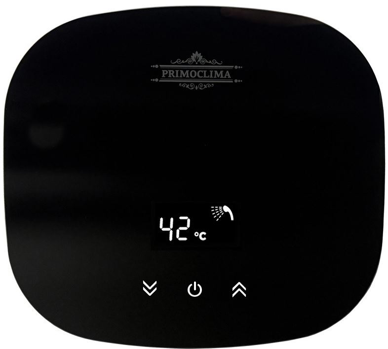 Primoclima (Примоклима) THERMA 5.5 кВт, черный это компактный и элегантный проточный водонагреватель с электрическим типом нагрева. Благодаря инновационным технологиям и продуманным конструкционным решениям бойлер безопасен и удобен в эксплуатации. Его лицевая панель выполнена из стекла. Горячая вода приготавливается за 5 секунд.