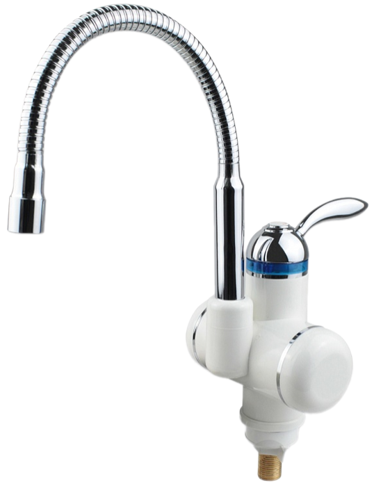- Кран-водонагреватель оснащен поворотным изливом, поэтому его удобно использовать как в обычной раковине, так и в раковине с двумя отделениями.