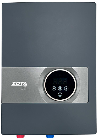 ZOTA (Зота) JOY 12кВт-3ф это эргономичный, компактный и мощный водонагреватель проточного типа. Модель подключается к трехфазной электрической сети и работает с высокой эффективностью и надежностью. Регулировка температуры нагрева воды происходит автоматически без участия потребителя. Цвет корпуса серый.