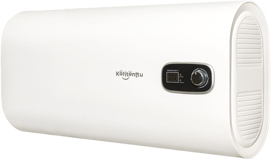 Водонагреватель горизонтального монтажа Kotitonttu (Котитонтту) SALMI HFM-80D работает по накопительному принципу. Встроенный бак изготовлен из стали с двойным эмалированным покрытием, что позволяет надежно защитить узел от коррозии. Вода подходит исключительно для бытового использования и не подходит для употребления в пищу.