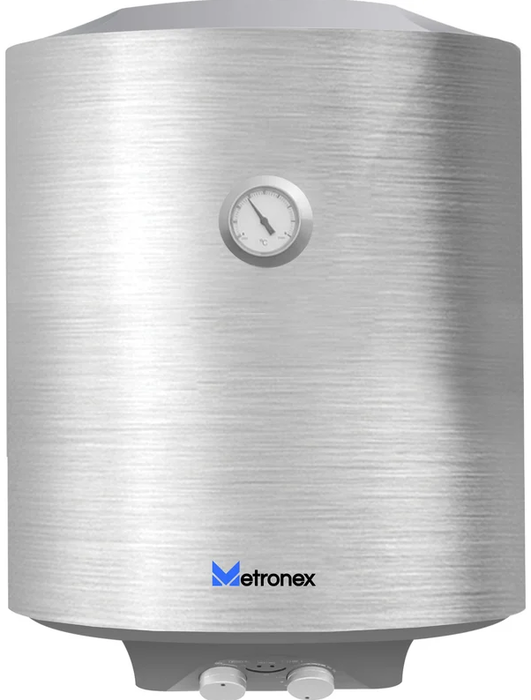 Metronex (Метронекс) TitanHeat MX WH 1.5kW 50 л Silver это электрический накопительный водонагреватель с мощным ТЭНом и надежным внутренним покрытием бака из пластифицированной эмали. Расцветка серебристый металлик делает бойлер изящным украшением интерьера любой ванной комнаты. Трубы подведены снизу.