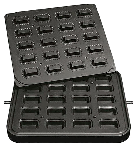 Форма Kocateq DHTartmatic Plate 22 используется совместно с тарталетницей DHTartmatic на предприятиях общественного питания и торговли, в пекарнях и кондитерских для выпечки тарталеток. Изделие представляет собой 2 пластины, одна из которых с выемками крепится к неподвижной станине тарталетницы, другая с выпуклостями - к верхней подвижной части. Модель оснащена 20 прямоугольными формами с фестонами. Антипригарное покрытие пластин выполнено из теплопроводящего сплава.