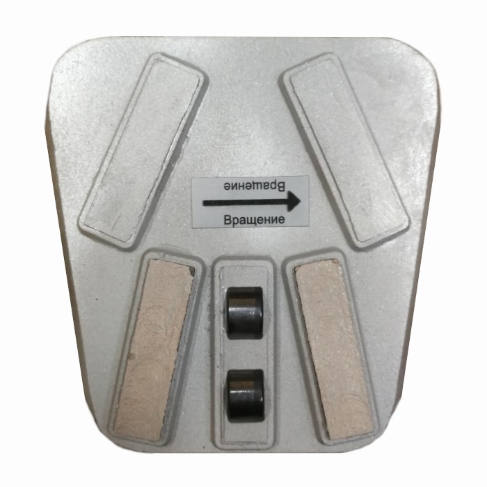 Франкфурт Aluminium №0000 используется в составе траверсных шлифовальных машин серии GM. Применяется для обработки бетонных полов. Предназначен для снятия больших неровностей и полимерных покрытий. Инструмент оснащен специальными 2-слойными таблетками из алмаза и твердого сплава, что позволяет помимо шлифовки выполнять также фрезерование поверхности. Таблетки расположены поперек направления вращения, что существенно увеличивает производительность.