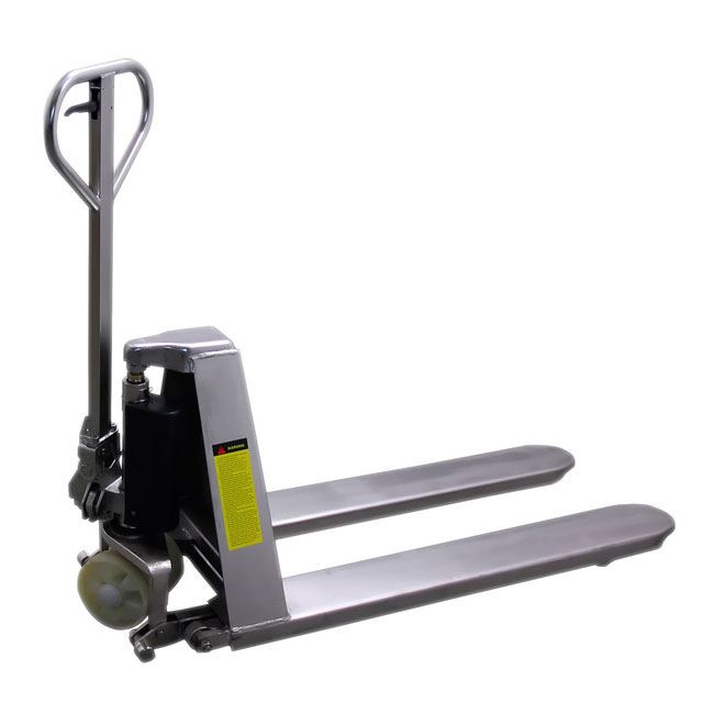 Грузоподъемность оборудования составляет 1000 кг. Гидравлический насос оснащен хромированными поршнями с увеличенным рабочим ресурсом. Есть функция контроля скорости снижения вил. Удобная рукоятка снабжена прорезиненной вставкой. Представленная модель отвечает требования качества и эргономики.