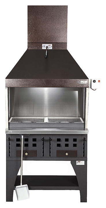 Гриль-мангал ITERMABG-100 используется на предприятиях общественного питания и торговли, в пекарнях и кондитерских дляприготовления мяса, рыбы и овощей с использованием угля. Модель оснащена рычагами для подъема и опускания решетки с углями для регулировки температуры приготовления, регулируемыми заслонками на корпусе и вытяжным зонтом с шиберной заслонкой. Все части мангала, контактирующие с углями, выполнены из жаростойкой стали и покрыты специально жаростойкой краской, технологический стол и защитные стенки - из нержавеющей стали.