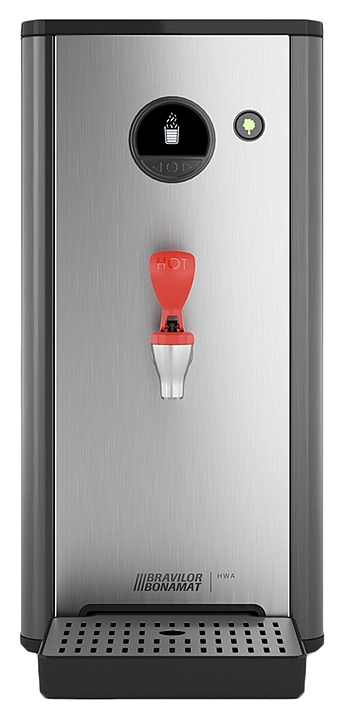 Кипятильник Bravilor Bonamat HWA 14используется на предприятиях общественного питания и торговли для приготовления горячей воды, предназначенной для супа, каши, чая и другихгорячих блюд и напитков. Модель оснащена рычагом для подачи воды и поддоном для сбора капель. Корпусвыполнен из нержавеющей стали.
