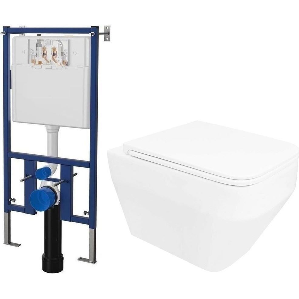 Комплект унитаз с инсталляцией Loranto Azario MONEO безободковый в комплекте с сидением микролифт 530*365*370, 4501+AZ-0062