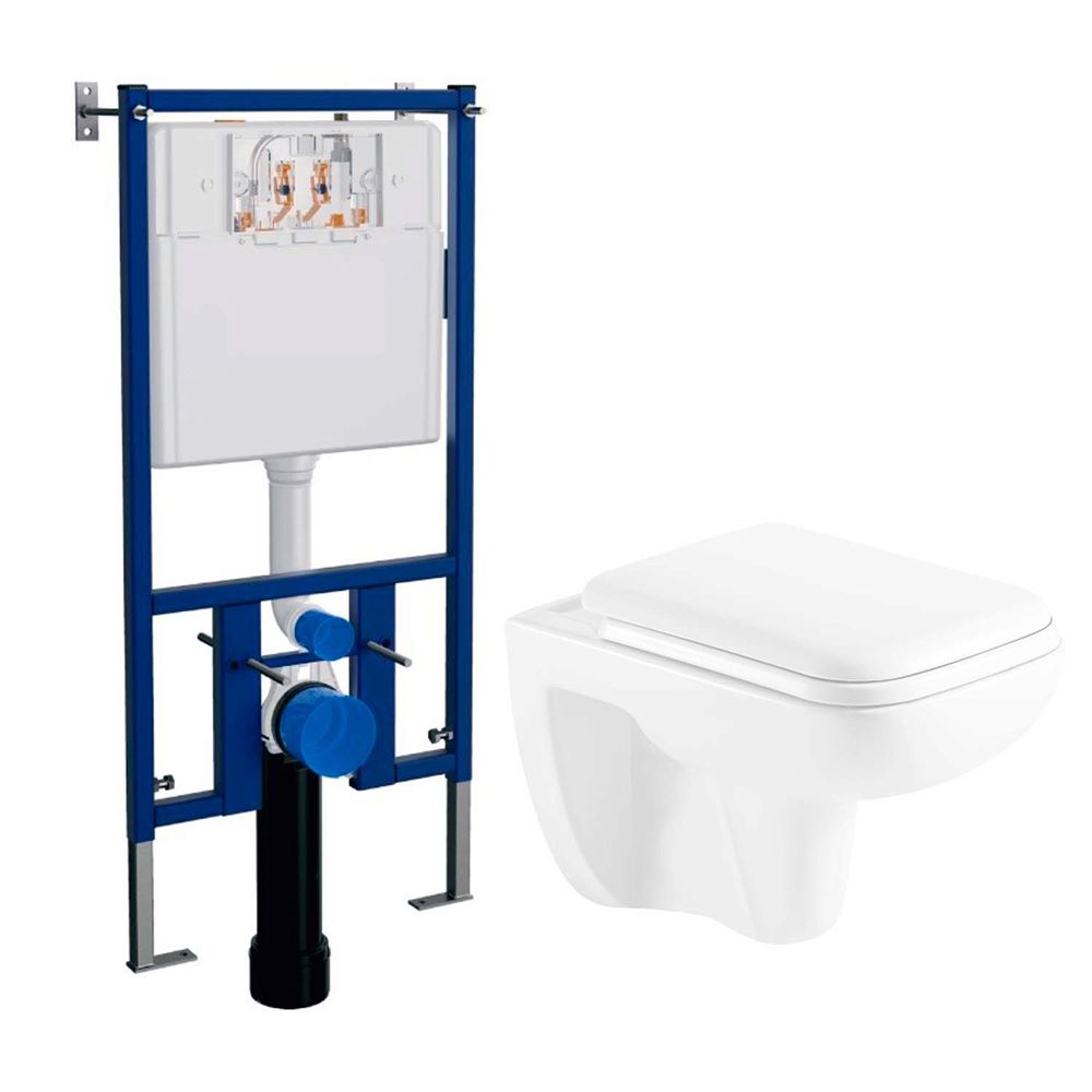 Комплект унитаз с инсталляцией Loranto Azario Pavia (квадратный) безободковый с сидением микролифт, 4501+AZ-2005