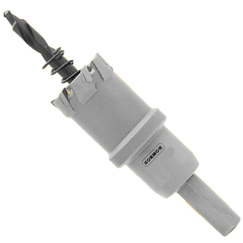 Корончатое сверло KORNOR TCT Drill для оснащения сверлильных станков и инструментов. Диаметр - 27 мм. Оснастка предназначена для сверления большинства металлических, пластиковых и других заготовок. Эксплуатируется при ремонте, строительстве, на производстве и в быту. Предусмотрена твердосплавная карбид-вольфрамовая режущая часть длиной 10 мм. Утроенная грань лезвия обеспечивает производительный рез с высокой скоростью и минимальными вибрациями. Удобный 3-хгранный хвостовик рассчитан на фиксацию на различных кулачковых патронах. Комплектация включает выталкивающую пружину и центрирующее сверло.
