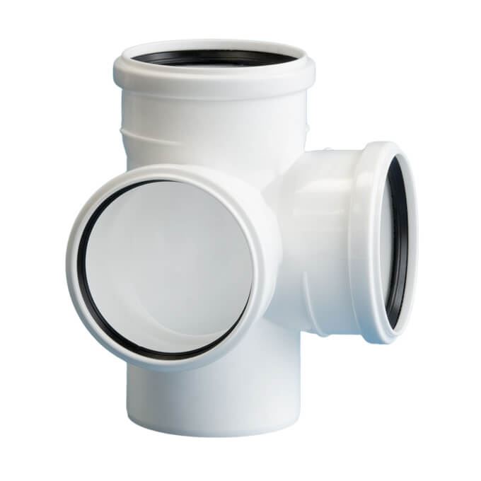 Крестовина белая в канализационных системах с улучшенным шумопоглощением предназначена для подключения к трубопроводу дополнительных ответвлений в одной (одноплоскостная) или в двух плоскостях (двухплоскостная).