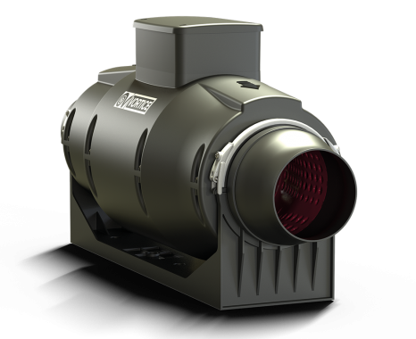 - Модель оснащена рабочим колесом смешанного типа, сочетая в себе высокую производительность осевых вентиляторов и высокое давление центробежных