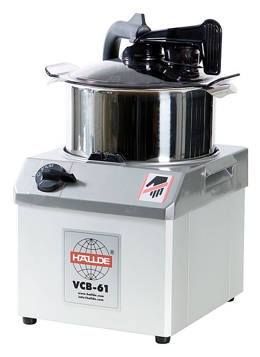 Куттер Hallde VCB-61 предназначен для переработки влагосодержащих, сухих и жидких пищевых продуктов: измельчение, мелкая нарезка и перемешивание практического любого типа продукта - от овощей до орехов, приготовление ароматизированных масел, майонеза, десертов, фарша, пюре, паштетов, панировочных сухарей и т.п.