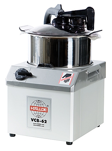 Куттер Hallde VCB-62 предназначен для переработки влагосодержащих, сухих и жидких пищевых продуктов: измельчение, мелкая нарезка и перемешивание практического любого типа продукта - от овощей до орехов, приготовление ароматизированных масел, майонеза, десертов, фарша, пюре, паштетов, панировочных сухарей и т.п.