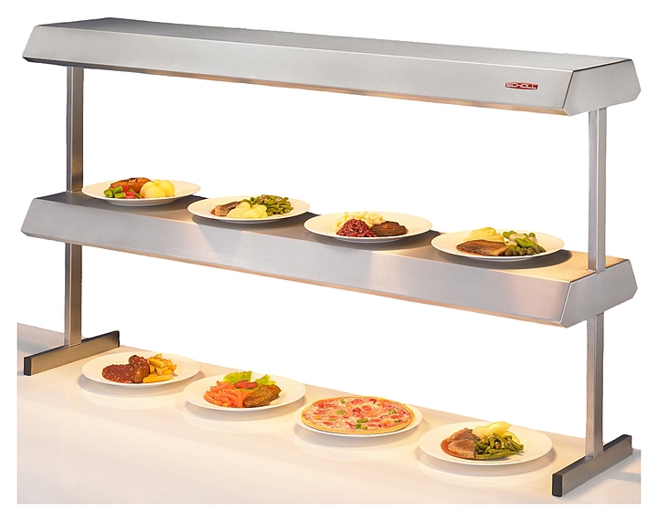 Лампа-подогреватель Scholl 27150 D используется на предприятиях общественного питания и торговли для кратковременного поддержания в разогретом состоянии сервированных горячих блюд и готовых горячих продуктов. Поддержание температуры осуществляется по принципу передачи ИК-излучения от лампы на подогреваемую поверхность. За счет инфракрасного излучения помимо нагрева происходит частичная стерилизация продукта.