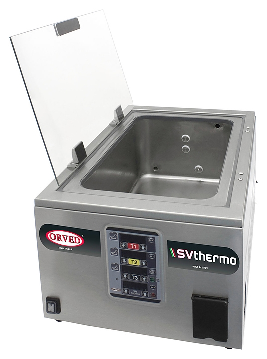 Макароноварка Orved SV THERMO используется на предприятиях общественного питания и торговли для приготовления бульонов, третьих блюд, кипячения воды. Модель оснащена электронным программируемым управлением с сохранением до 90 программ и прозрачной перенавешиваемой крышкой, выдерживающей удары исильные перепады температуры, а также позволяющей наблюдать за процессом приготовления. Корпус выполнен из нержавеющей стали, крышка - из закаленного стекла