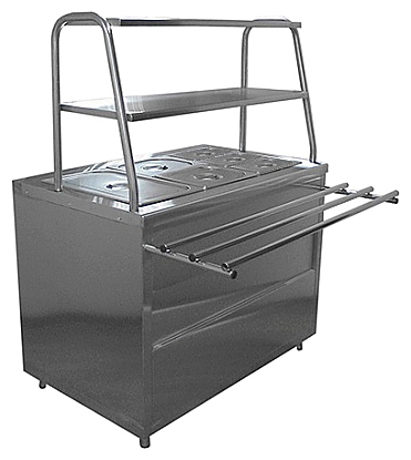 Мармит Пищевые Технологии Лира-Профи Эко МЭП-2Б-П/ЛПЭ-1500 предназначен для кратковременного сохранения в горячем состоянии вторых блюд, соусов и гарниров в составе линий раздач или самостоятельно на предприятиях общественного питания и торговли. Модель оснащена 2 полками, направляющими для подносов и регулируемыми по высоте ножками. Корпус выполнен из нержавеющей стали, отдельные элементы - из окрашенной оцинкованной стали.