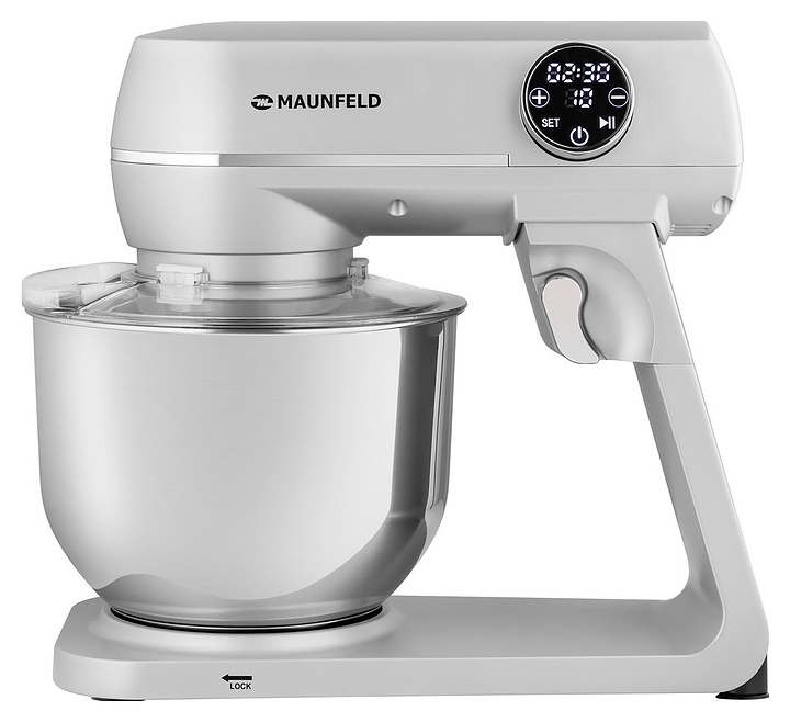 Планетарный миксер Maunfeld MF-423SSиспользуется на предприятиях пищевой промышленности, общественного питания и торговли, а также в домашних условияхдля замеса теста жидкой консистенции, в том числе белкового, заварного, дрожжевого, бисквитного, а также приготовления кремов исоусов. Модель оснащена сенсорной панелью управления круглой формы с цифровым дисплеем с яркой голубой светодиодной подсветкой. Корпус выполнен из алюминия с поверхностью цвета нержавеющей стали, дежа и рабочие элементы насадок из высококачественной нержавеющей стали с глянцевой поверхностью, упаковка картонная коробка.