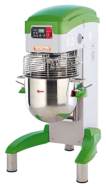 Планетарный миксер Sigma CHEF 40 используется на предприятиях общественного питания и торговли, в пекарнях и кондитерских для замеса теста различной влажности, взбивания сливок, перемешивания мясного фарша и картофельного пюре. Форма спирали, соотношение ее диаметра с размером дежи вместе со скоростью вращения спирали и дежи обеспечивают наилучшее качество теста. Рабочие части и защитная решетка выполнены из нержавеющей стали.