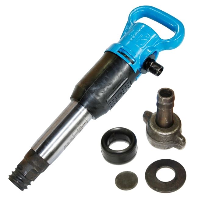 Данная модель обладает средней мощностью и очень широко распространена на российском рынке. Молот имеет достаточно широкую область применения: от добычи руд, сланца и прочих материалов до раскалывания льда и разрыхления затвердевшего грунта. Также часто молоты применяются для создания пробоин в кирпичной кладке. Модель предусматривает защиту от шума и передаваемой вибрации, поэтому она является достаточно простой и удобной в применении. При работе предусматриваются пики со стандартными хвостовиками. Эта модель отличается доступной ценой. Предусматривает работу от пневматического привода.