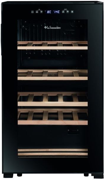 LaSommeliere (Ла Соммельере) SLS32DZBLACK представляет собой небольшой винный шкаф, который устанавливается на пол и не занимает много места. Он рассчитан на 32 бутылки вина, объемом 0,75 л. Имеет одну камеру и две независимые друг от друга температурные зоны. Верхняя зона позволяет разместить 18 бутылок, а нижняя 14.