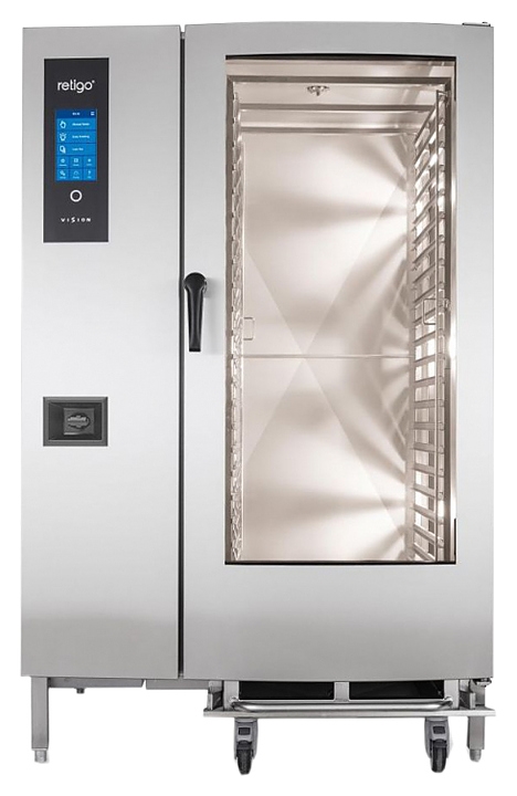 Пароконвектомат Retigo B2021IG VISION II серии Blue VisionIIпредназначен для обжаривания, приготовления на пару, бланширования, запекания и других видов тепловой обработки продуктов на фабриках-кухнях, предприятиях общественного питания и торговли.Оборудование заменяет сразу несколько видов приборов: плиту, конвекционную печь, жарочный шкаф, духовку, опрокидывающуюся сковороду, пищеварочный котел и фритюрницу. Приготовленные в пароконвектомате блюда сохраняют все полезные вещества. Модель оснащена сенсорной панелью управления и цифровым дисплеем.
