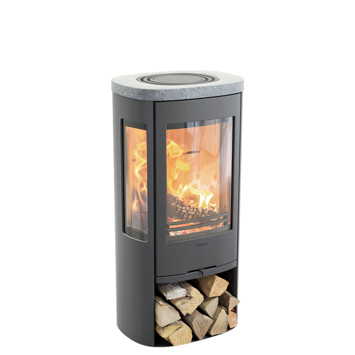 Contura (Контура) 856:3 Style, чугунная дверца, серый это печь, которая обеспечит тепло и уют в любом помещении. Данная модель имеет удобные широкие боковые панели, что позволяет любоваться пламенем из любой части комнаты. Печь-камин также имеет нишу для дров, расположенную под дверцей топки.