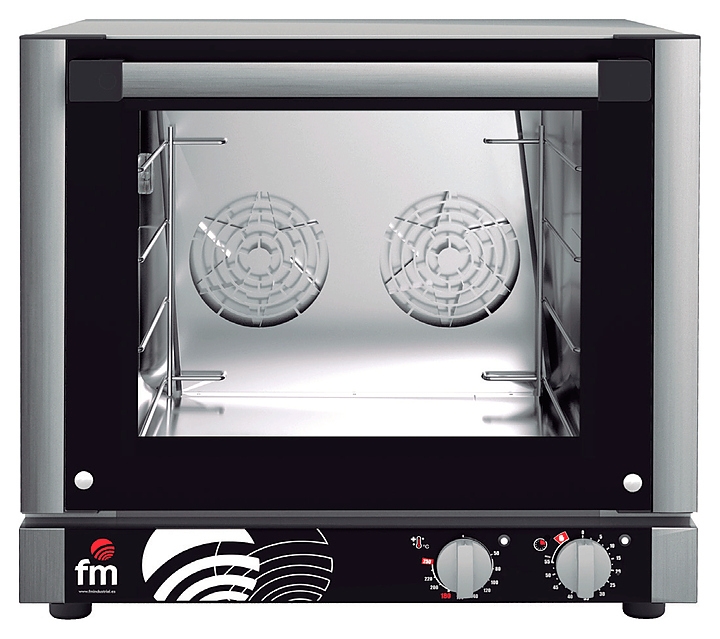 Конвекционная печь FM RX-424-H предназначена для выпекания различных кондитерских и хлебобулочных изделий, замороженных или предварительно выдержанных в расстоечном шкафу заготовок из теста на предприятиях пищевой промышленности, общественного питания и торговли. Модель оснащена универсальными направляющими, которые позволяют разместить листы для выпечки длиной от420 до480 мм и ширинойдо 370 мм. Корпус и камера выполнены из нержавеющей стали.