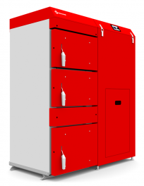 Модель имеет водонаполненные колосники, что позволяет использовать как дополнительную камеру для ручного сжигания топлива.Котел в комплекте c автоматической пеллетной горелкой PellHard или Pellhard Plus, контроллером HT Tronik 850 с погодозависимой автоматикой и возможностью удаленногоуправления через Интернет, топливным бункером (от 200 до 500 л), вентилятором и инструментом для чистки. Бункер может быть смонтирован слева или справа от котла.Корпус котла теплоизолирован и закрыт металлическими панелями с полимерной окраской.