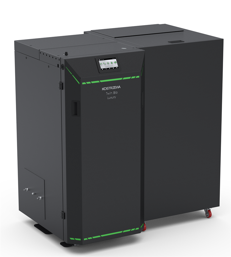 С котломKostrzewaTwin Bio Lux Compact 24 больше не нужно гадать, какой вид пеллет купить и от какого производителя!Twin Bio Lux Compact 24 сжигает самые дешевые (ок. 600 зл./тонна пеллет класса В) и наиболее загрязненные песком древесные пеллеты (класс: А1, А2, В). Благодаря сжиганию загрязненных пеллет, устройство не нуждается во временном отключении горелки для ее очистки от шлаков. Очистка горелки происходит в режиме постоянной работы. Встроенная керамическая камера в устройстве и горелке ограничивает выброс в атмосферу вредных веществ.