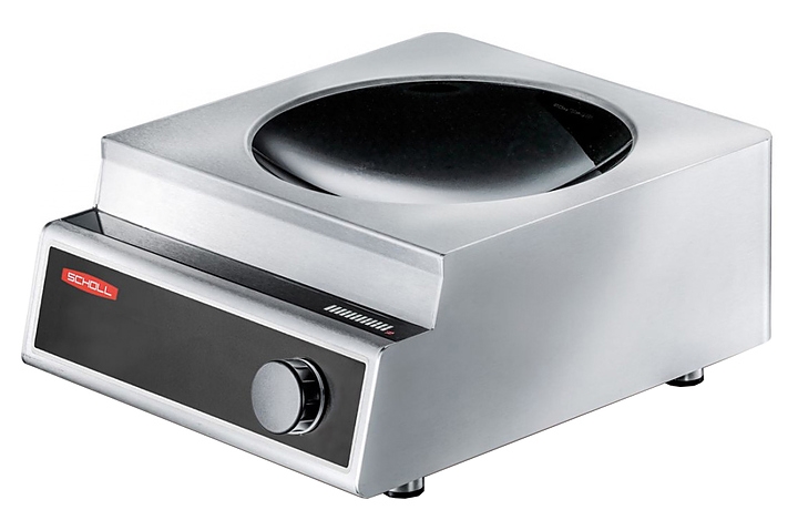 Индукционная плита Scholl FLEX Wok 5используется на предприятиях общественного питания и торговли для приготовления широкого спектра блюд в наплитной посуде. Изделие оснащено 12-ти позиционным переключателем мощности, позволяющим точно регулировать работу индукционного элемента.Корпус полностью выполнен из хромоникелевой стали, сферическая индукционная конфорка - из ударопрочной стеклокерамики черного цвета.