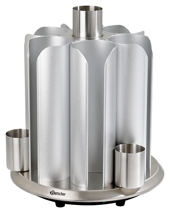 Подогреватель чашек Bartscher 103067 используется на предприятиях общественного питания и торговли для поддержания чашек и ложек в теплом состоянии. Вращающееся основание позволяет удобно снимать или ставить посуду на подогреватель. Модель оснащена 4 съемными емкостями для размещения чайных ложек. Корпус выполнен из алюминия.