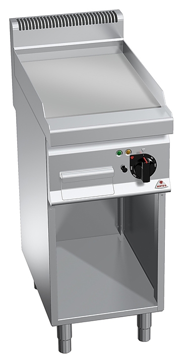 Жарочная поверхность Bertos E7FL4MP серии macros 700 используется на предприятиях общественного питания и торговли для жарки мяса, рыбы и овощей. Модель оснащена бортиками по периметру для предотвращения разбрызгивания жира. В открытом нейтральном шкафу можно хранить посуду, кухонные принадлежности и продукты, не требующие специального температурного режима.
