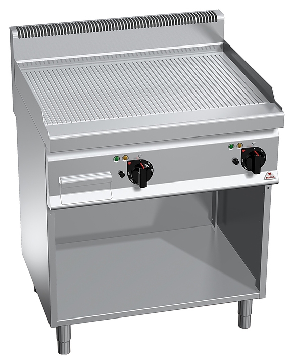 Жарочная поверхность Bertos E7FR8MP-2 серии macros 700 используется на предприятиях общественного питания и торговли для жарки мяса, рыбы и овощей. Модель оснащена бортиками по периметру для предотвращения разбрызгивания жира. В открытом нейтральном шкафу можно хранить посуду, кухонные принадлежности и продукты, не требующие специального температурного режима.