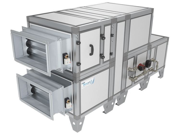 Приточно-вытяжная установка Breezart (Бризарт) 14000C Aqua Cool обладает высокой производительностью и обеспечивает вентиляцию, охлаждение и нагрев воздуха. Прибор оснащен роторным рекуператором и вентиляторами серии ЕС, которые имеют многоступенчатую регулировку скорости вращения.