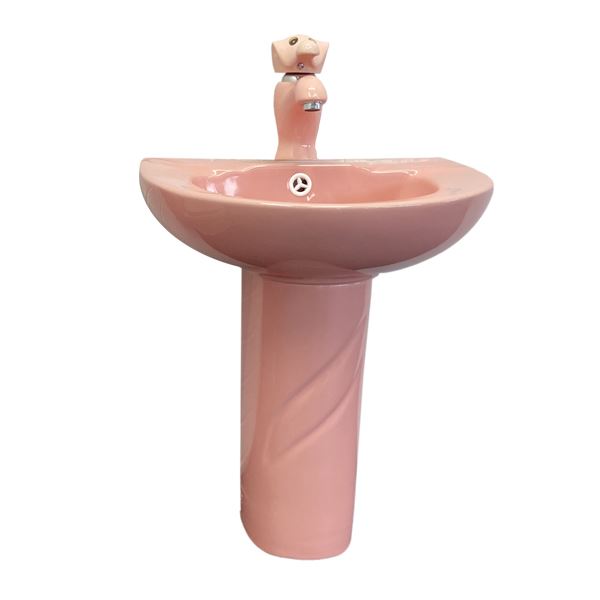 Раковина с пьедесталом COMFORTY комплект детский розовый: раковина 0991P с донным клапаном DK-02P + пьедестал P0991P + смеситель 01P, 00-00008370